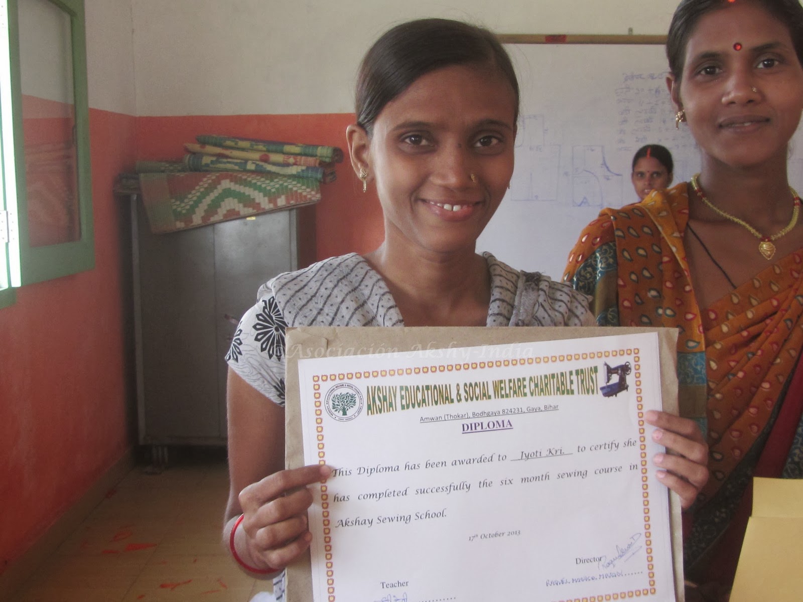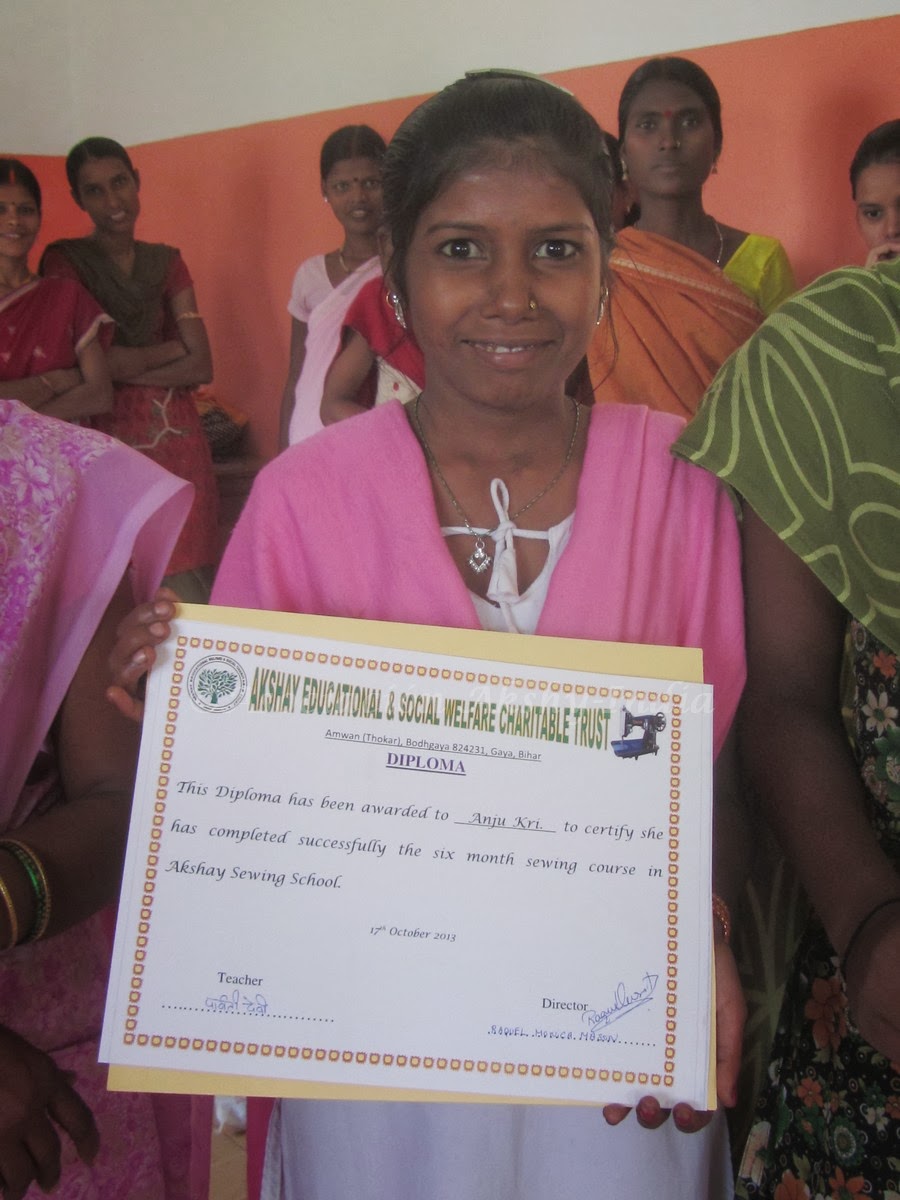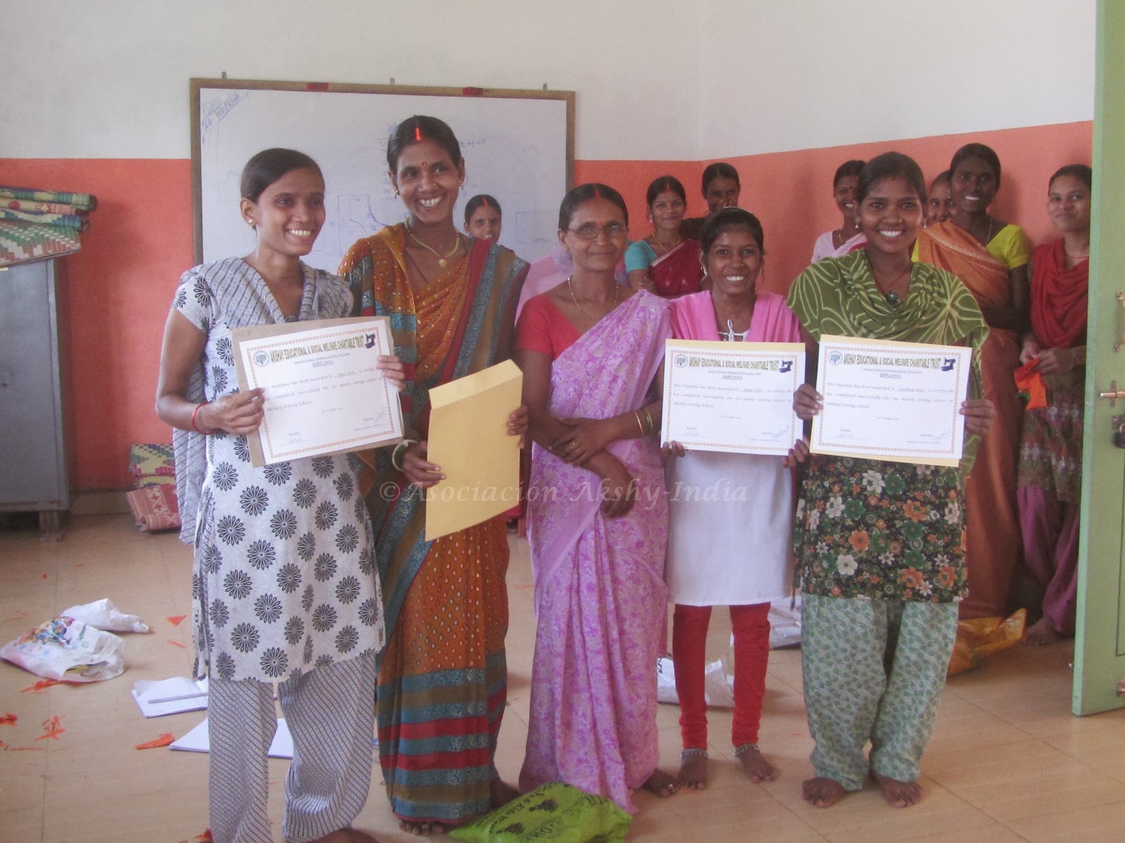 Seis meses despúes de la inauguración de la escuela de Costura Akshay, el primer grupo de mujeres, primera promoción, que ha participado en este proyecto ha terminado el curso.