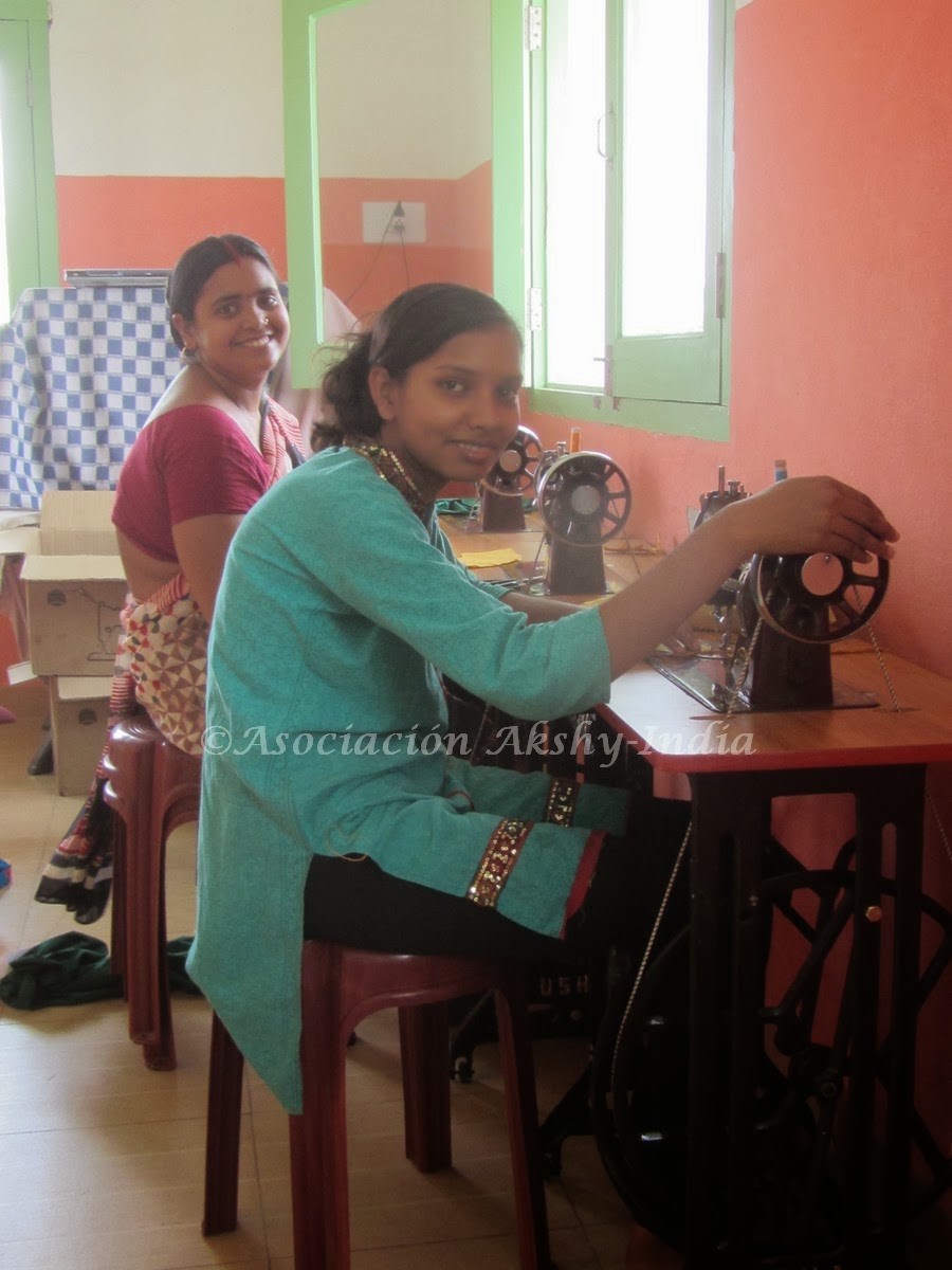 En este mes de noviembre acabamos de abrir un nuevo grupo de costura con otras 15 mujeres, por lo que ahora tenemos dos grupos de mujeres, el avanzado y el principiante. Se ha ido corriendo la voz por el pueblo sobre la Escuela de costura Akshay y ahora tenemos una larga lista de espera de mujeres apuntadas para los nuevos cursos.