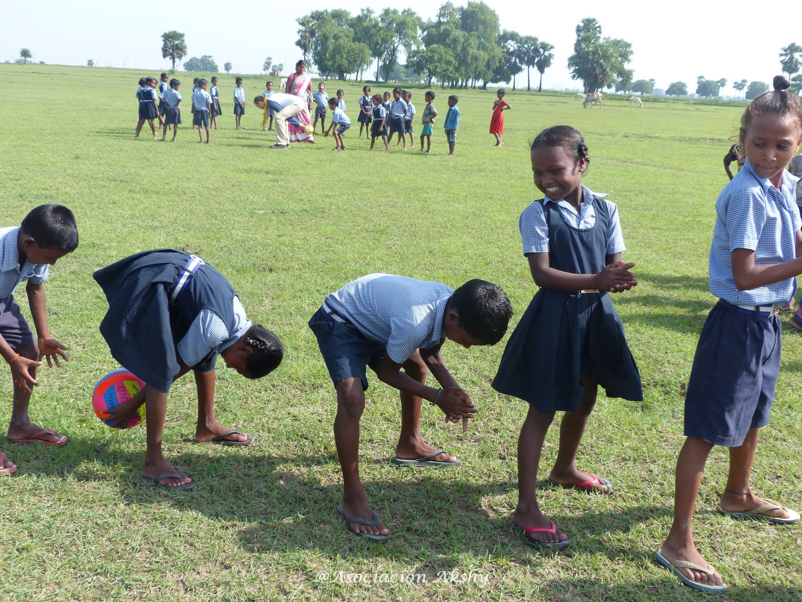 En India en las escuelas realizan lo que llaman P.T, (entrenamiento físico) que es una secuencia de tablas que ayudan con la coordinación pero poco más. Por lo que la forma de presentar la educación física a través de los voluntarios es una auténtica novedad. Con la ayuda de José y Carmen los profesores están aprendiendo a dar importancia a esta asignatura que generalmente está poco valorada en las escuelas indias.